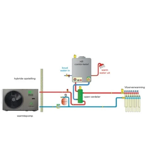 lagere temperaturen schakelt de hybride warmtepomp de cv-ketel in om mee te